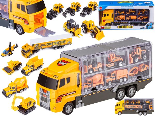 Ciężarówka, Transporter + Auta, Otwierana Laweta, Pojazdy Budowlane + Helikopter 12w1
