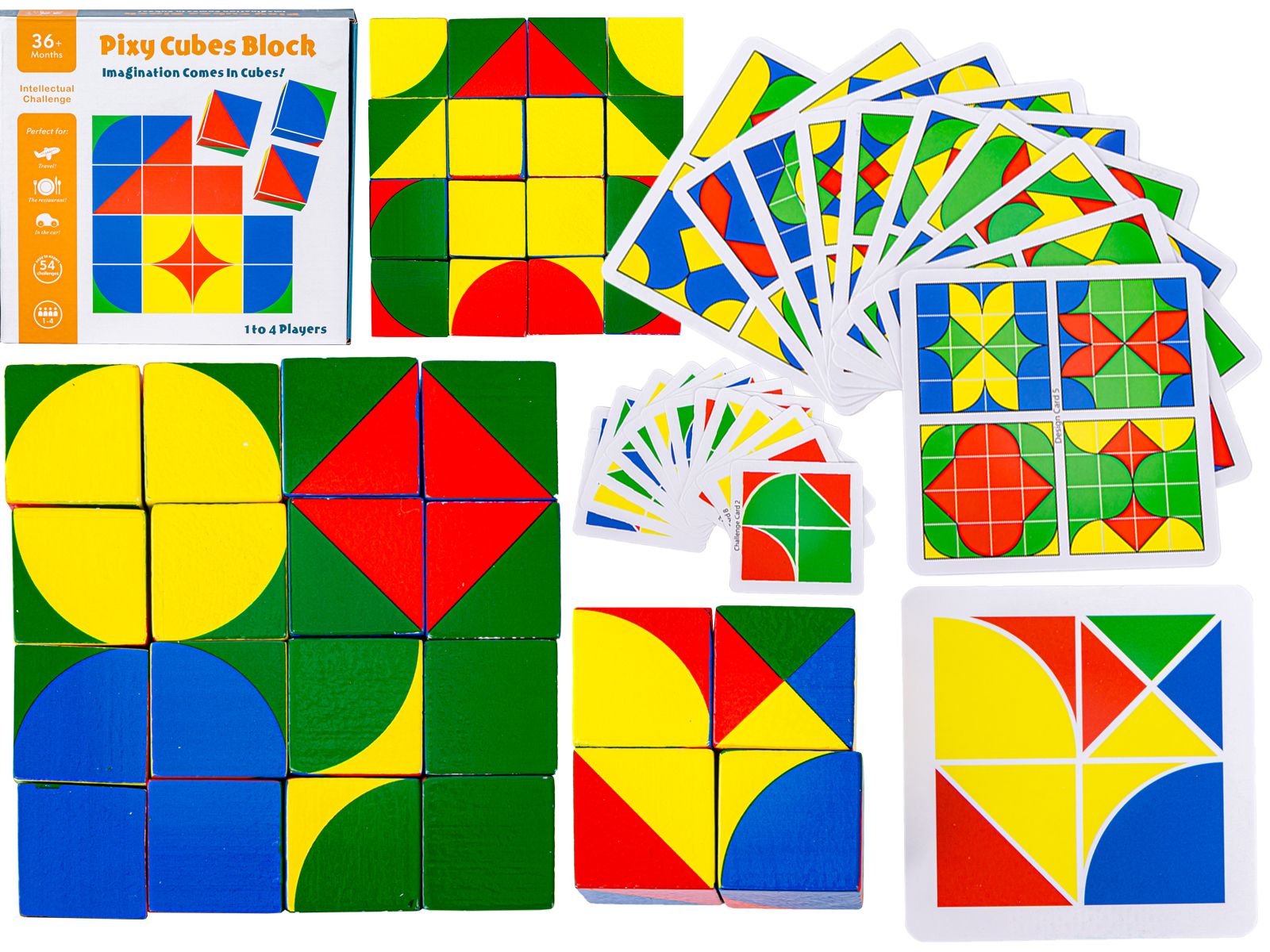 Edukacyjna Układanka Dla Dzieci, Kolorowe, DREWNIANE KLOCKI, Karty
