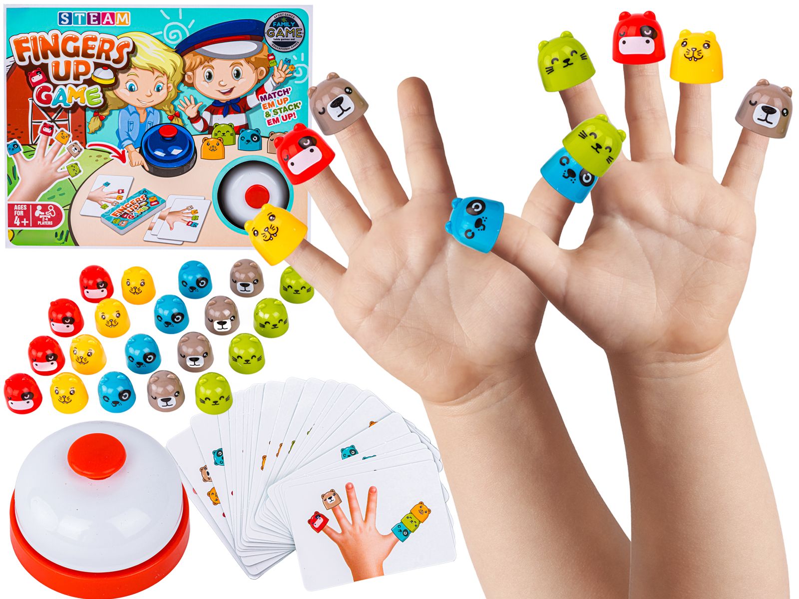 Gra Na Refleks Łapki, Paluszki W Górę, FINGERS UP GAME, Kolorowe Naparstki, Karty, Dzwonek, Kto Pierwszy