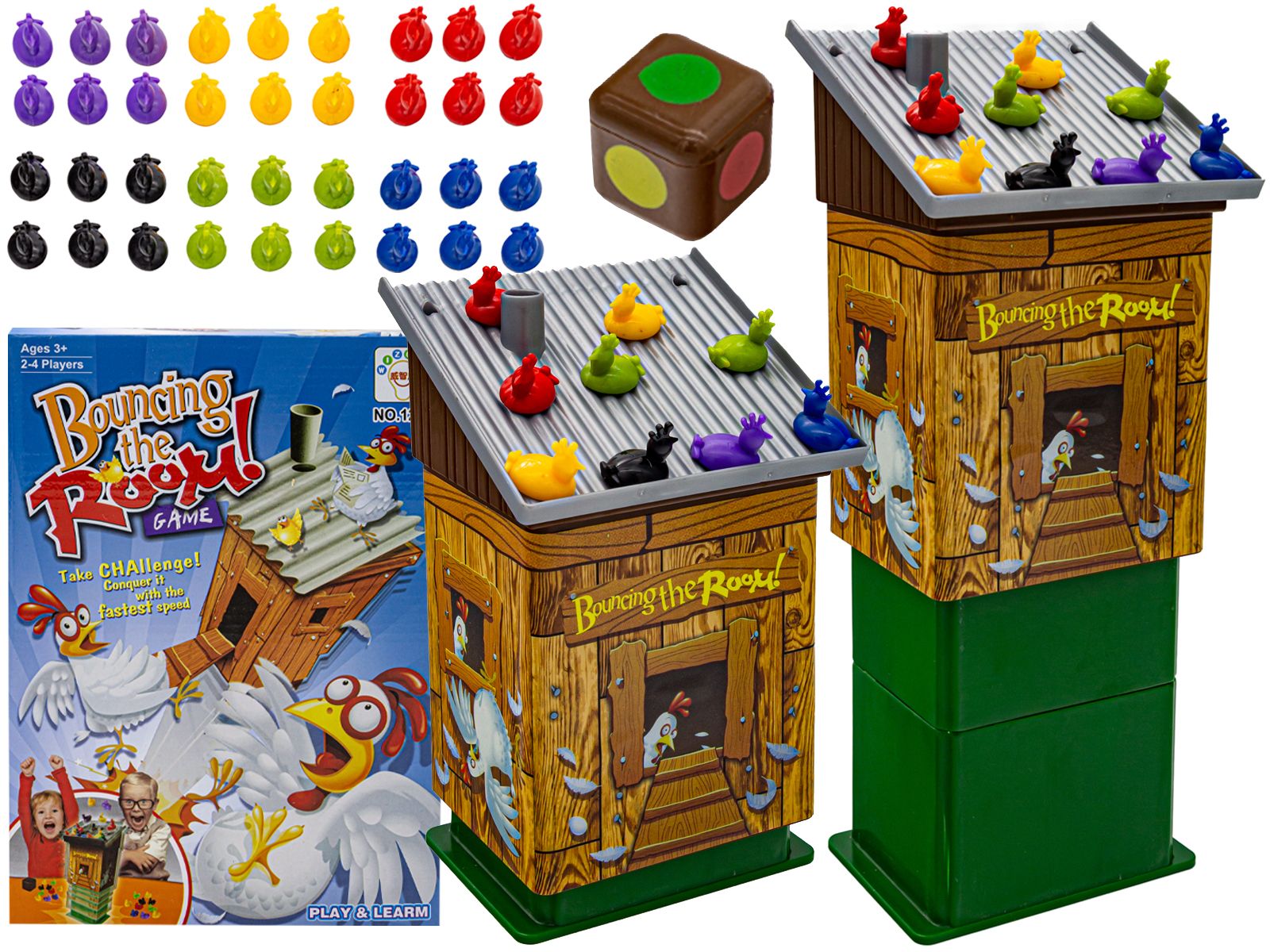 Zabawna gra zręcznościowa przeznaczona dla 2-4 graczy. Zabawa polega na tym aby jak najszybciej ustawić swoje kurczaki na dachu kurnika. Zadanie wcale nie jest takie łatwe, ponieważ kurnik „wybucha” i wystrzeliwuje kurczaki w powietrze.