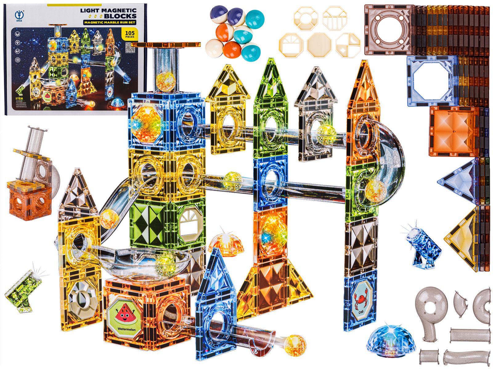 Klocki Magnetyczne Konstrukcyjne TOR KULKOWY Świecące Elementy 174 El. Kulodrom