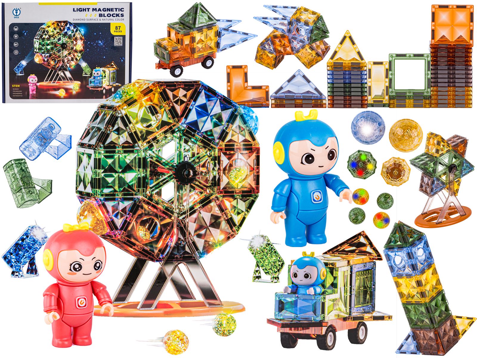 Konstrukcyjne Klocki Magnetyczne Świecące Elementy, Diabelski Młyn 87 El.