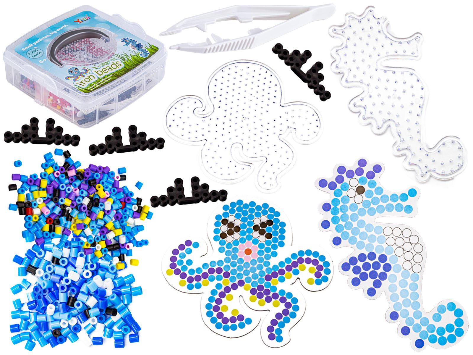 Koraliki Do Prasowania Szablony Ośmiornica, Konik Morski, Zestaw 2000 Elementów, Prasowanka, Kuferek
