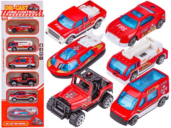Metalowe Pojazdy Uprzywilejowane, Auta, Resoraki 6 Sztuk Zestaw 1:64 STRAŻ POŻARNA, WÓZ STRAŻACKI