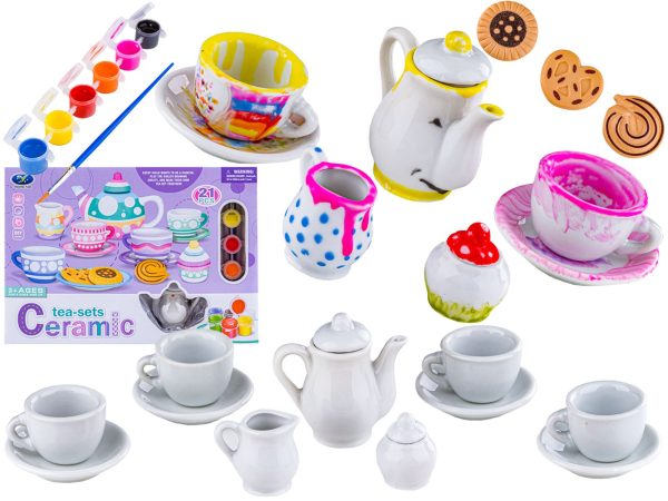 Porcelanowy Zestaw Do Malowania, Filiżanki, Imbryk, Farby + Akcesoria DIY 21 Elementów