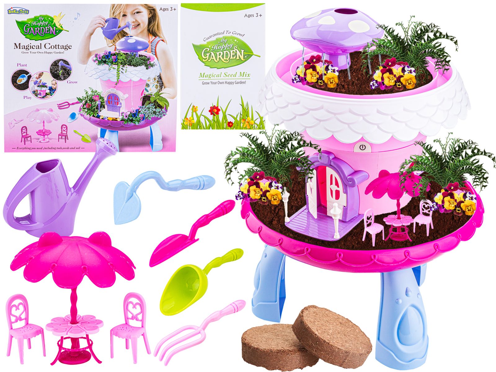 RÓŻOWY Zestaw Małego Ogrodnika UPRAWA Nawilżacz do roślin, Domek Dla Lalek, Stolik, Doniczka Na Rośliny