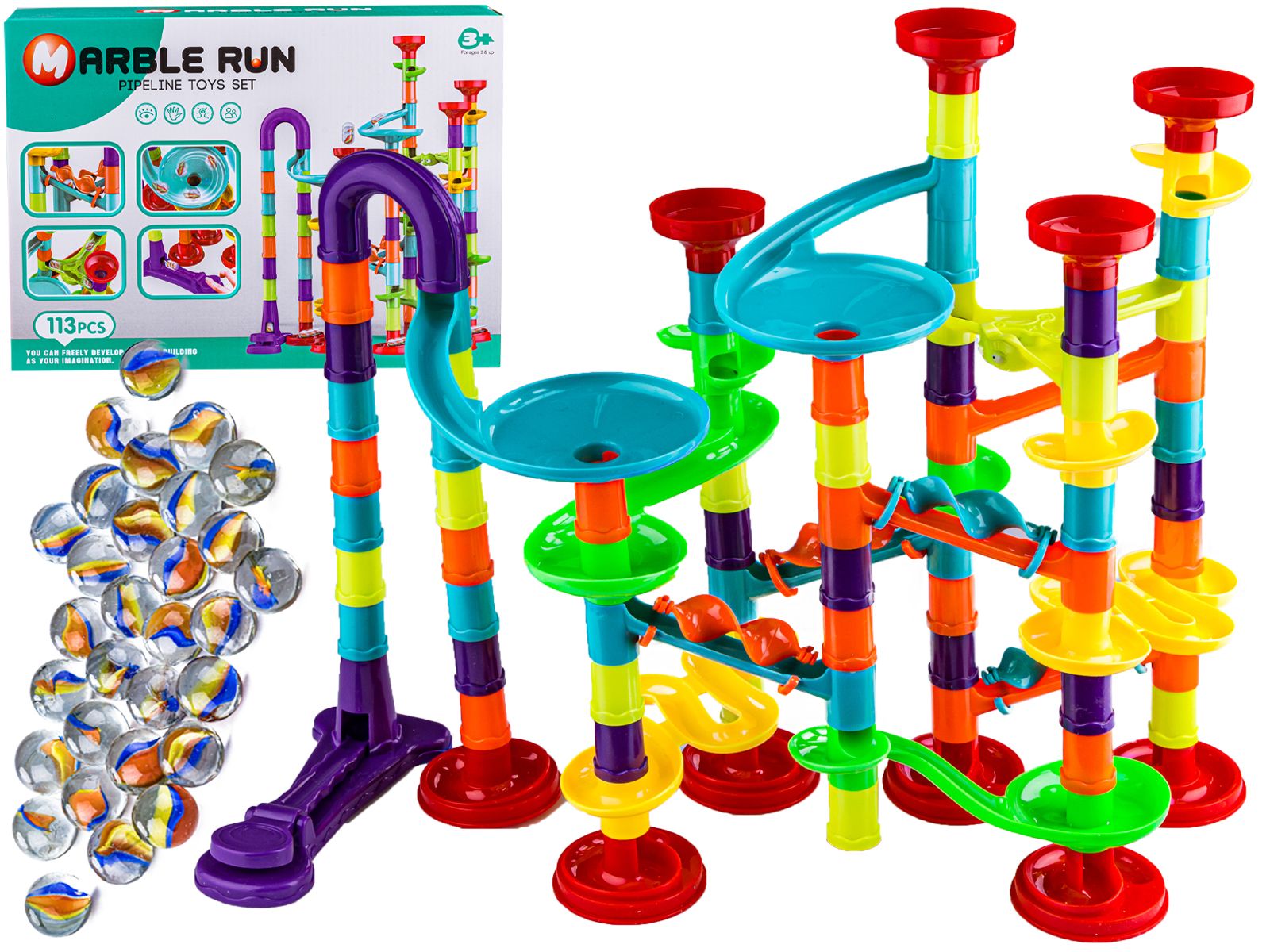 Tor dla kuleczek wciąga do zabawy nie tylko małych, ale i dużych. Puszczanie w ruch kuleczki i obserwowanie jej trasy to mnóstwo radości. Dziecko może bawić się samo, z przyjaciółmi lub rodzicami organizując wyścigi – czyja kuleczka pierwsza dotrze do mety?